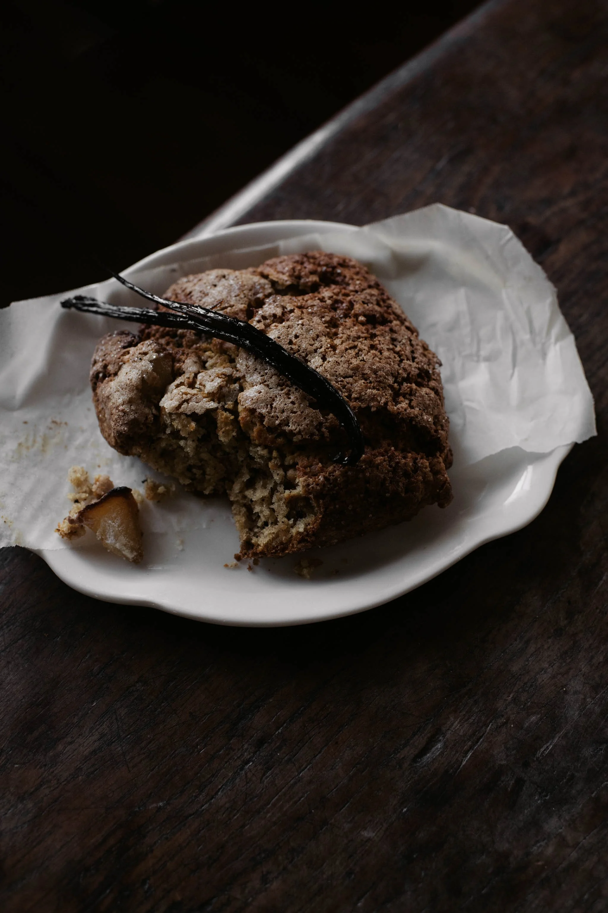 I made these scones in my temporal seaside home. Simple, and just sweet, with the few staples I had. The pantry wasn’t mine. They’re easily changeable and that’s what I like about them best. I don’t often stick to recipes, not even my own, and I like a blank canvas that can be tainted according to my shifting tastes - in this case, the sea. Roasted brandied pears, orelys white chocolate, walnuts. But I want you to make them yours, to alter them – their course.